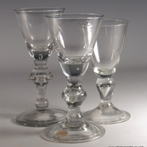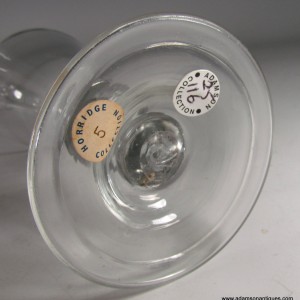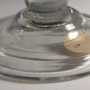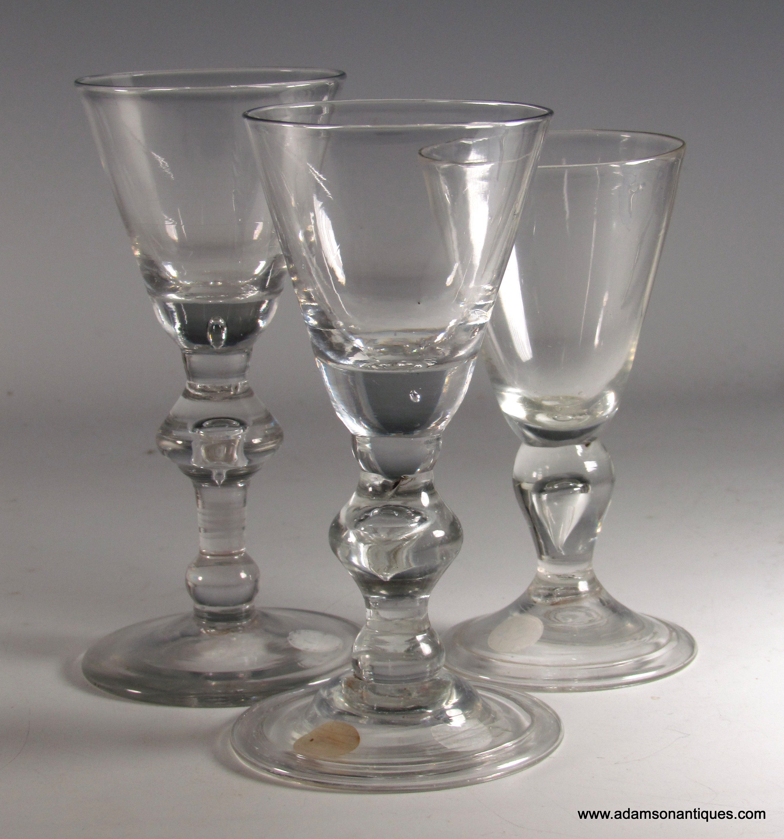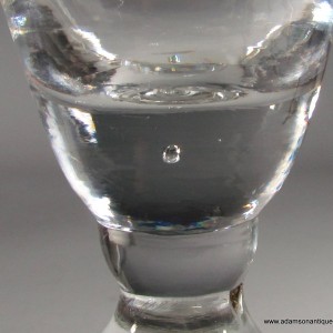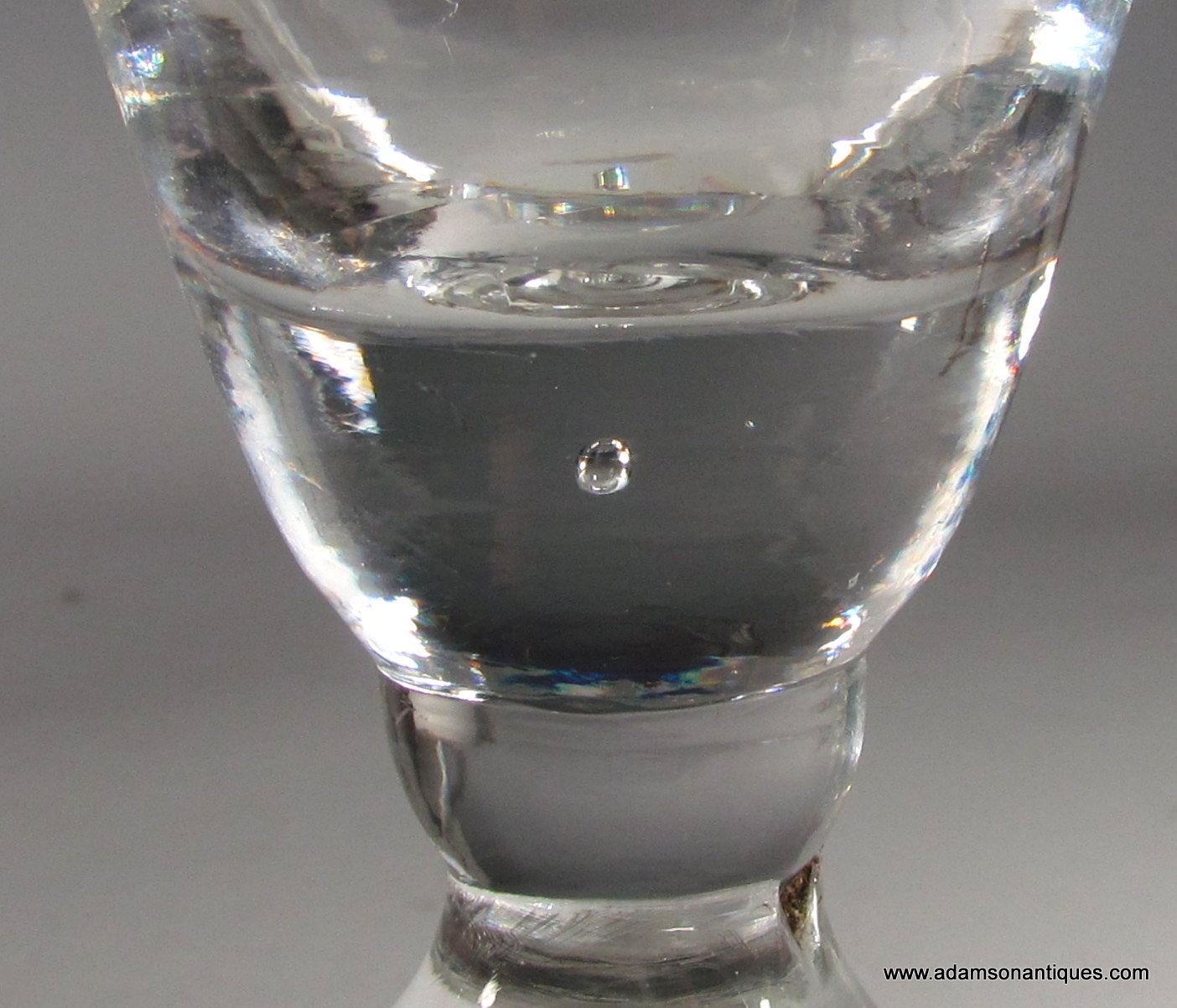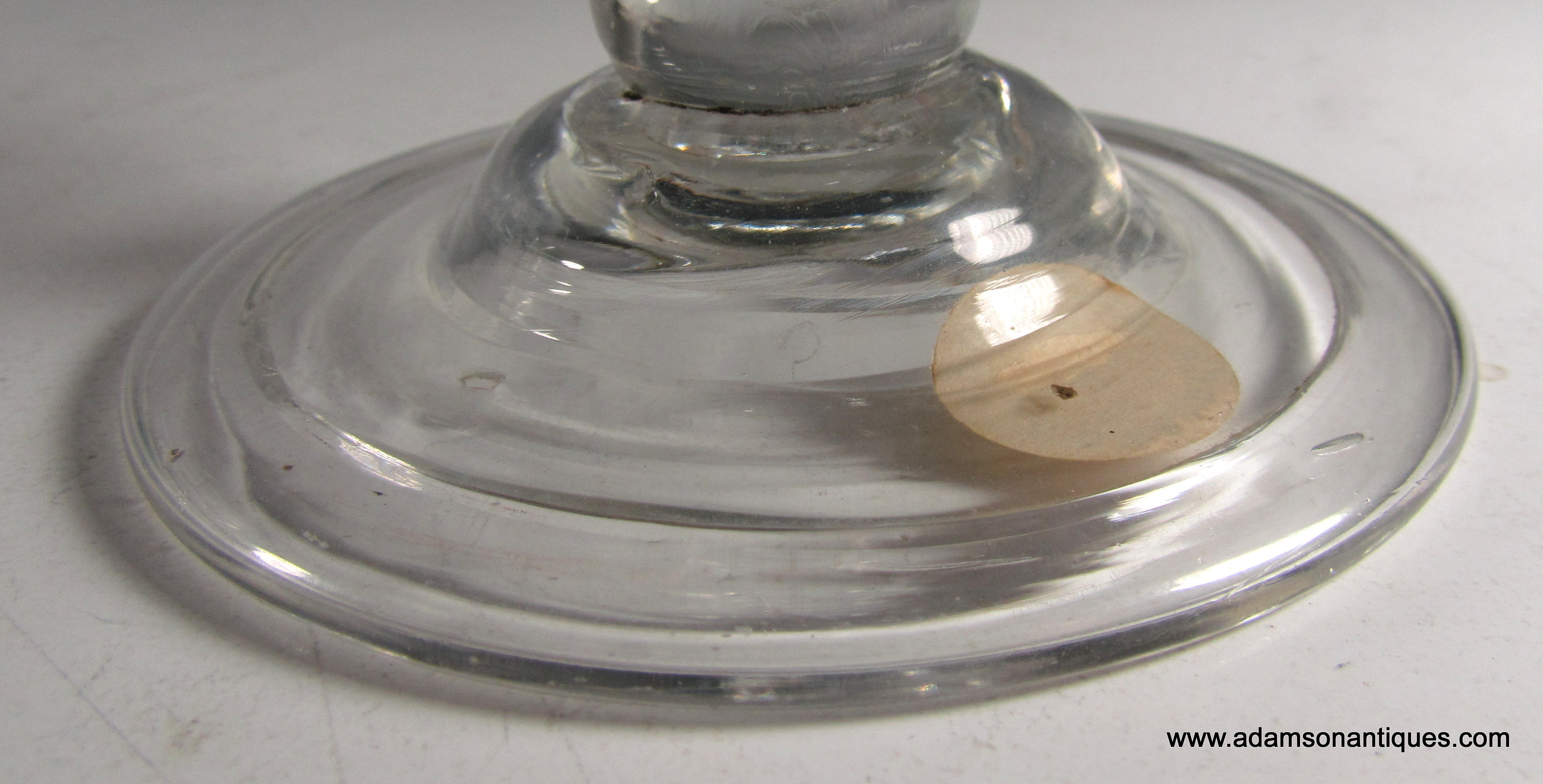 A very fine heavy baluster wine glass, having a round funnel bowl with a solid base with a half knop below , over a stem with teared angular knop and basal knop , all on a domed and folded foot ,