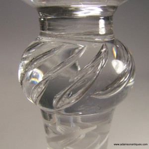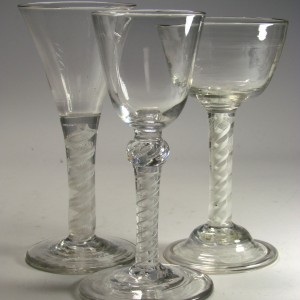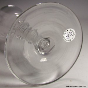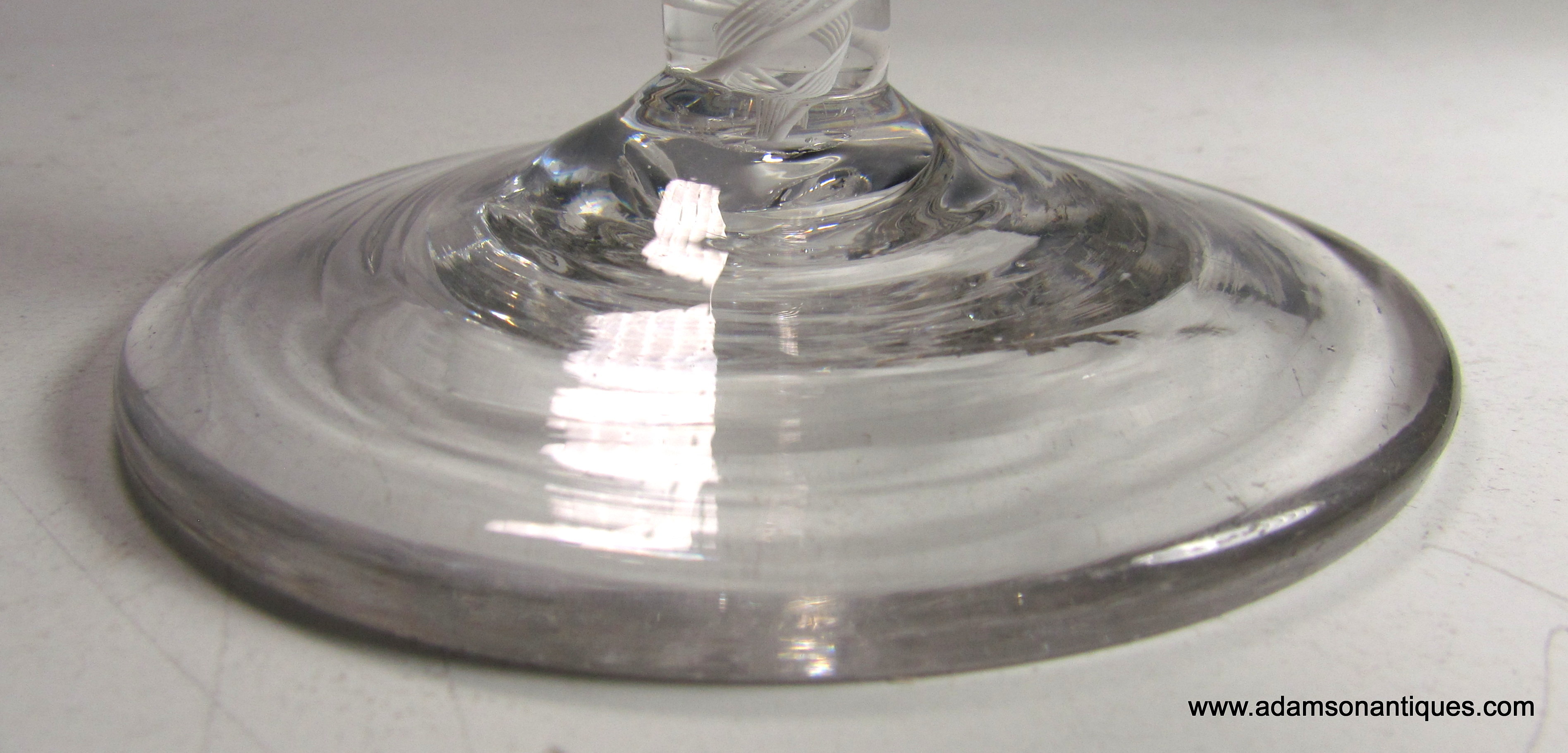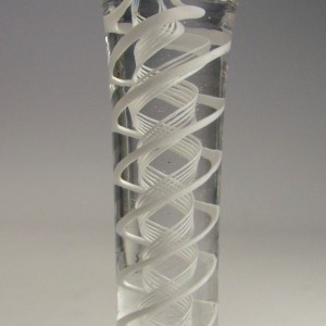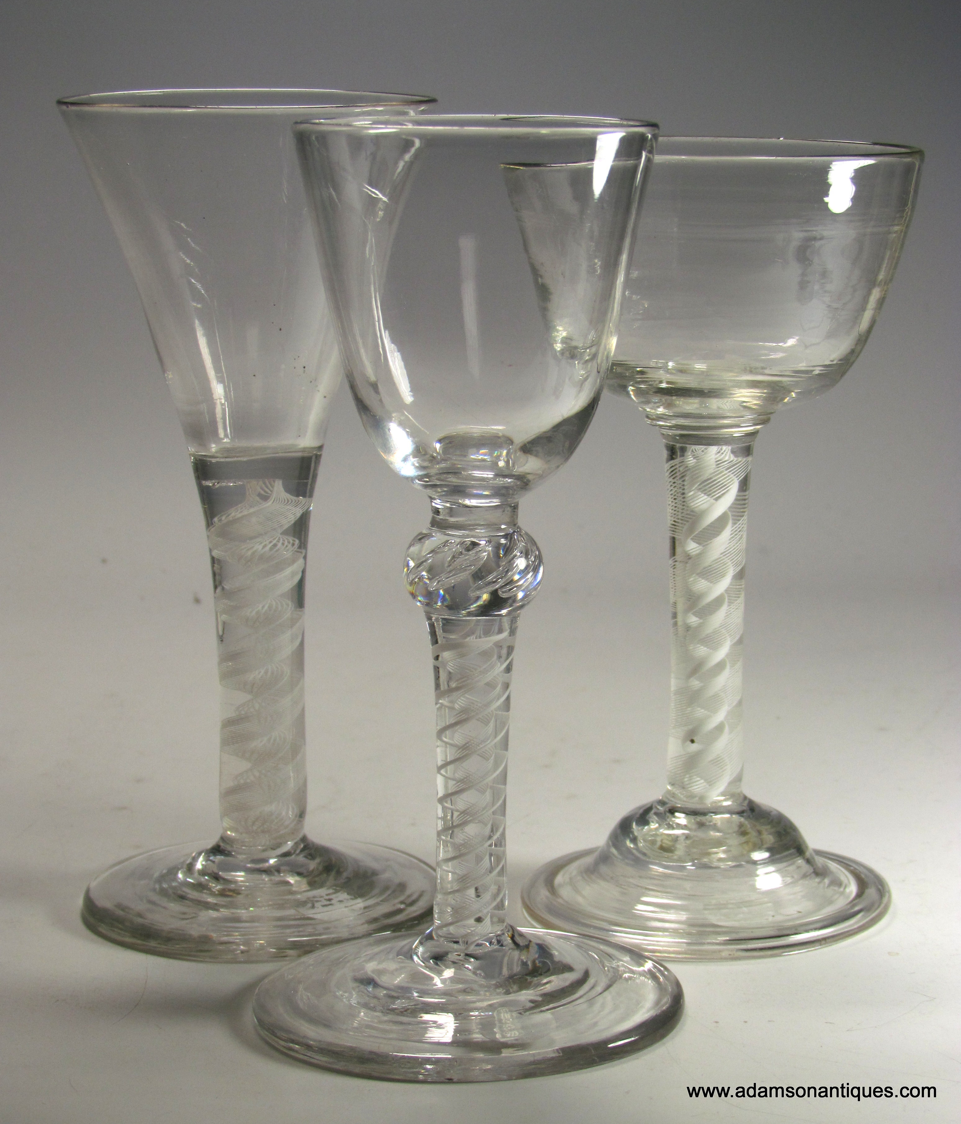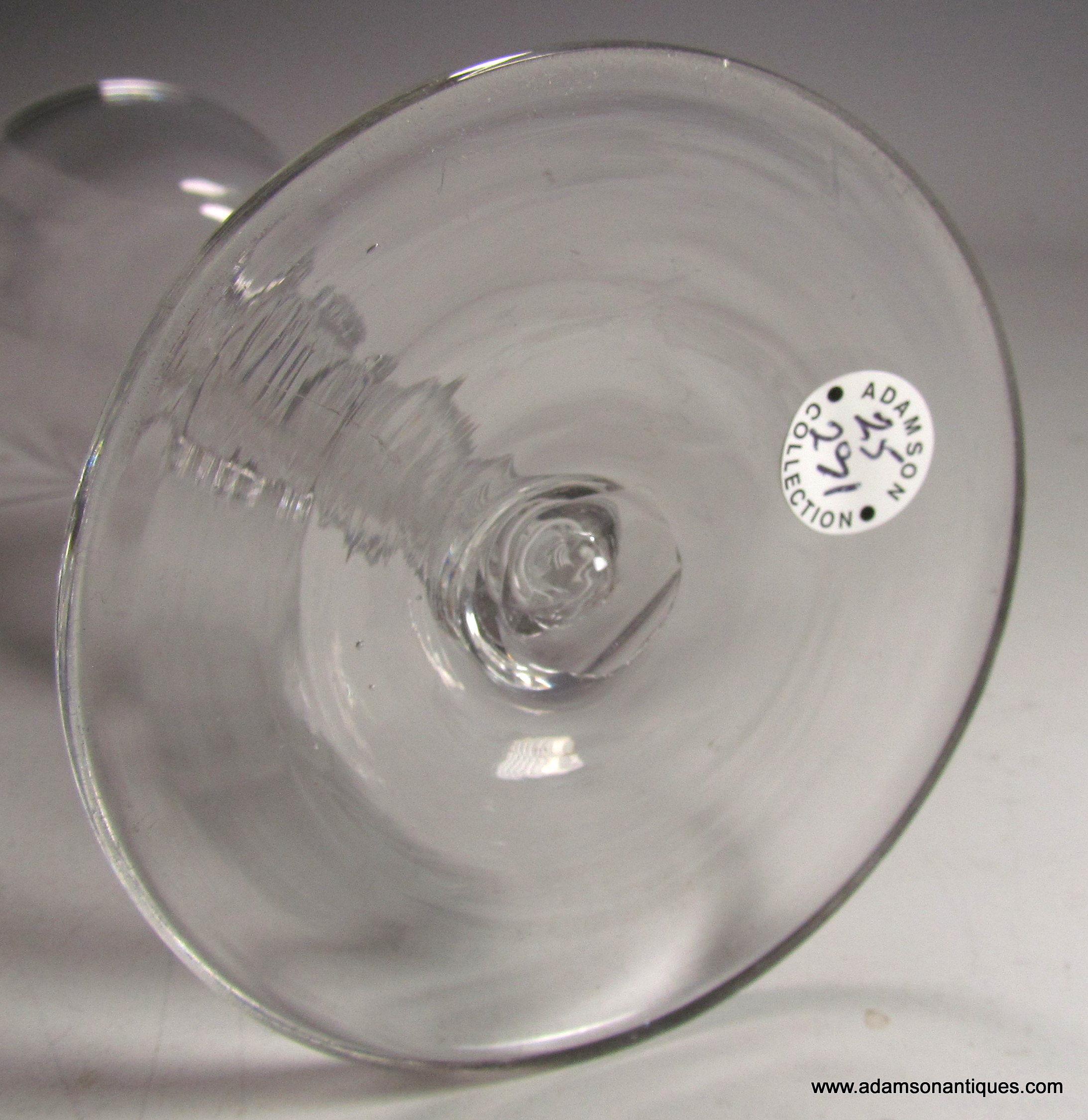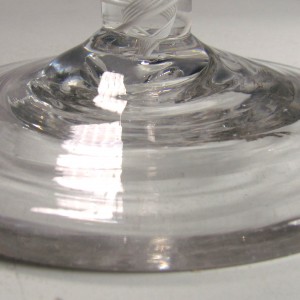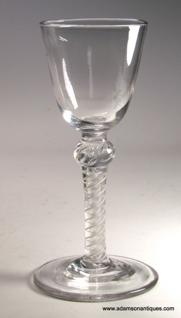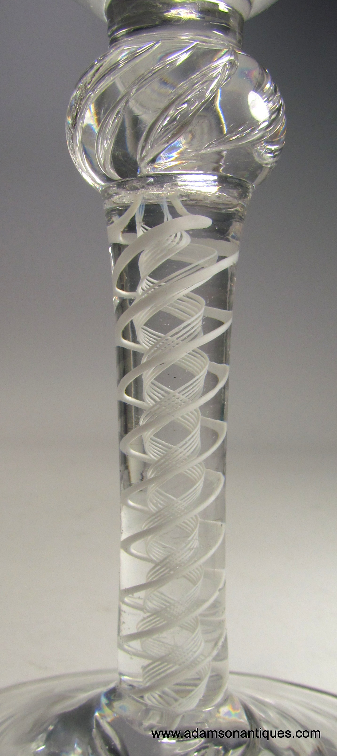 A very unusual large wine glass or small goblet having a round funnel bowl over a double series opaque twist stem with a teared shoulder knop, all on a plain conical foot.
