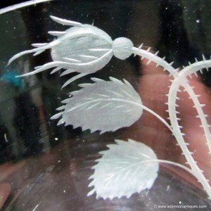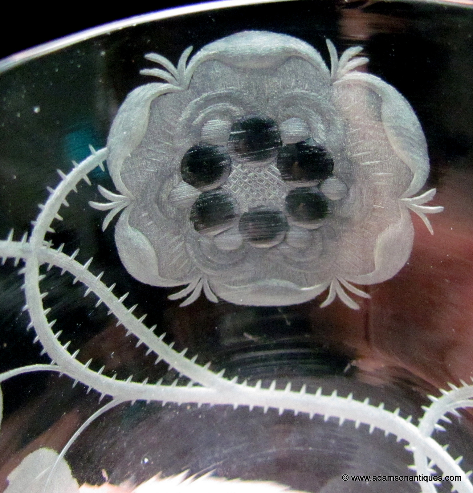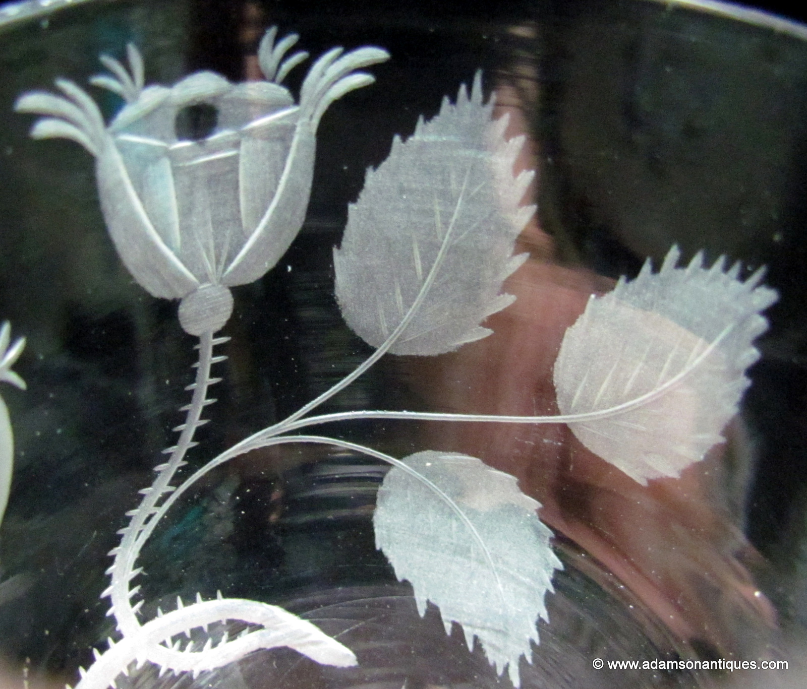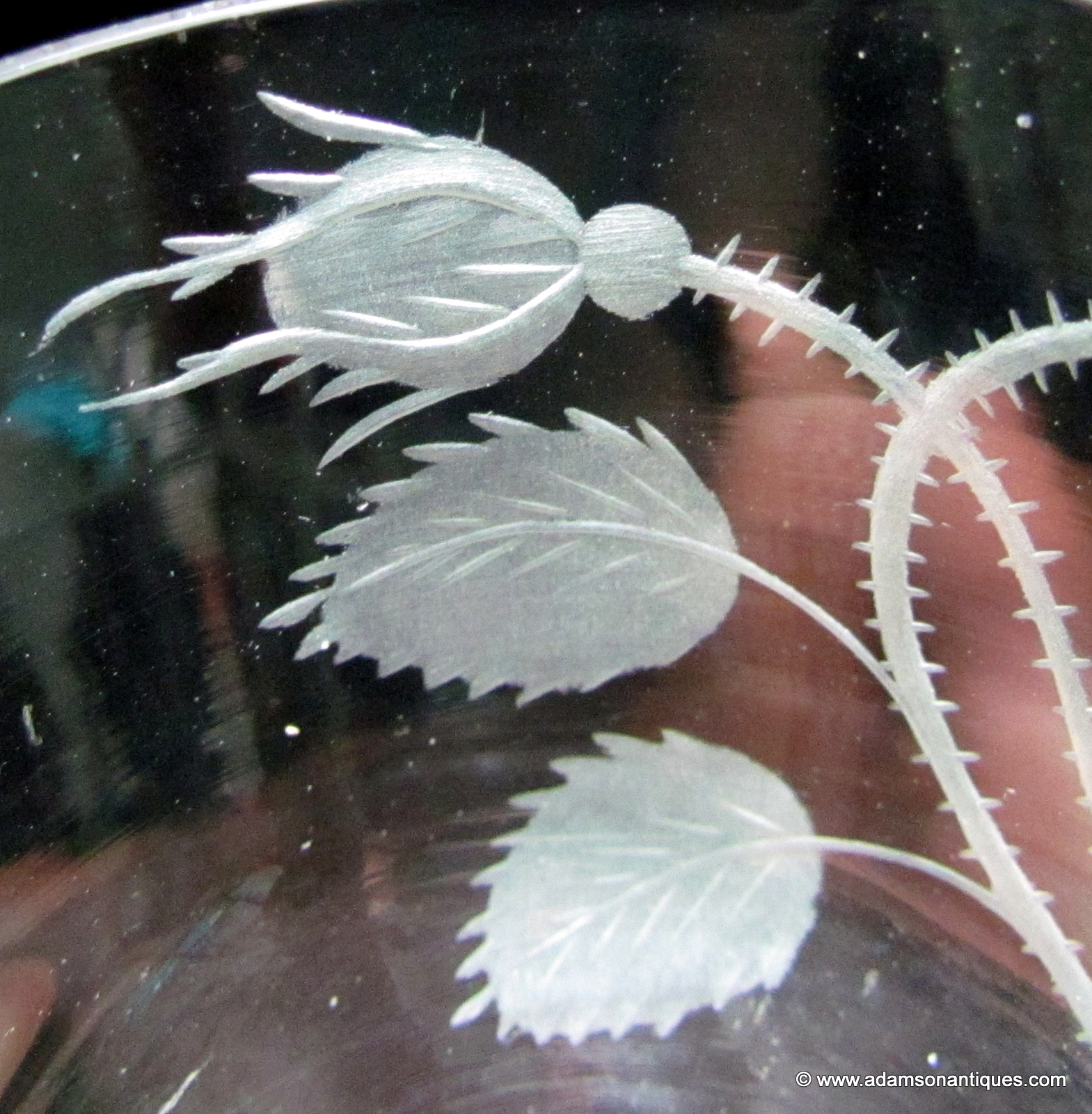 An excellent Jacobite firing glass with an ogee bowl engraved with a six petaled rose, an open bud and a closed bud,all on a plain stem and thick firing foot.