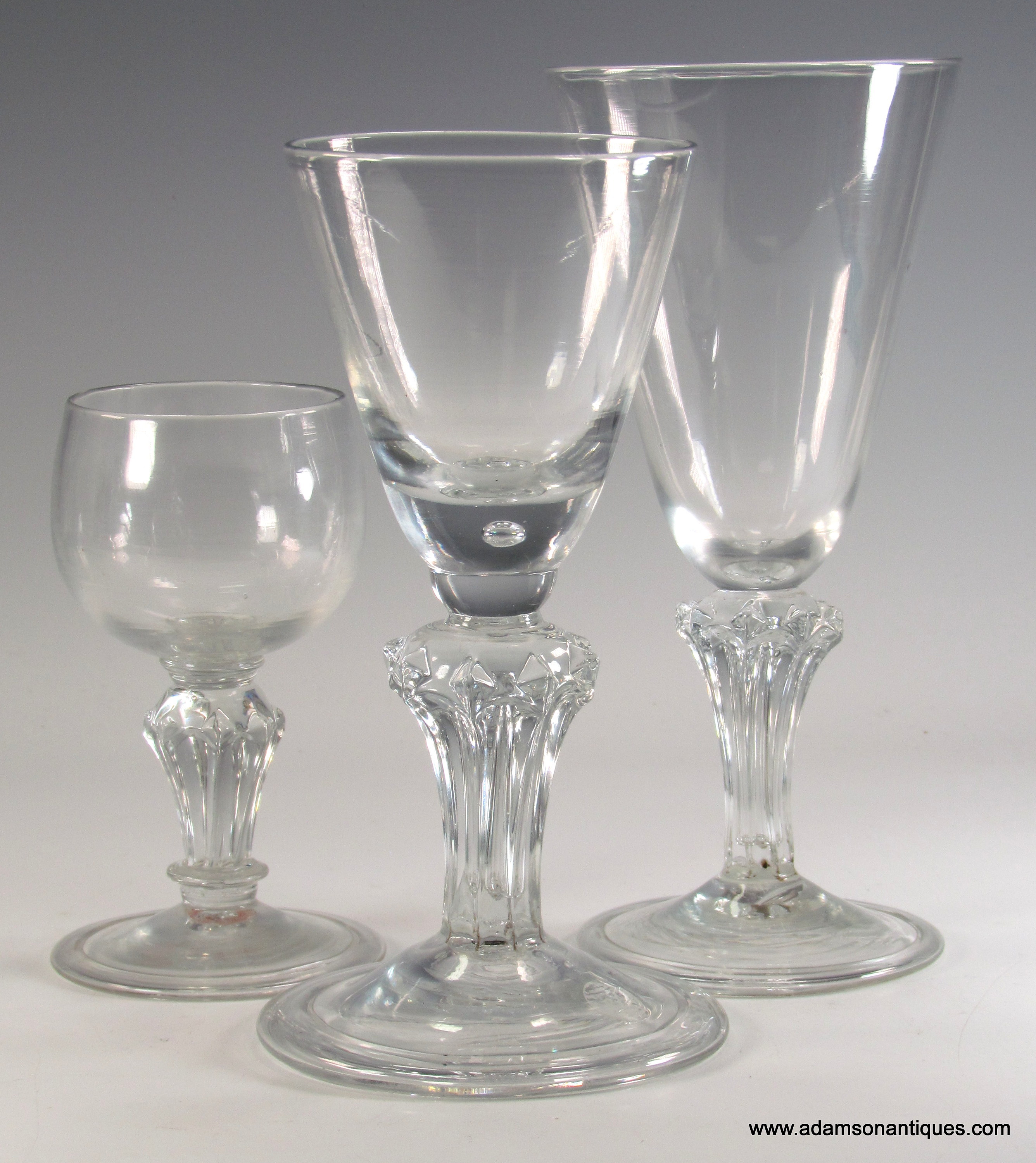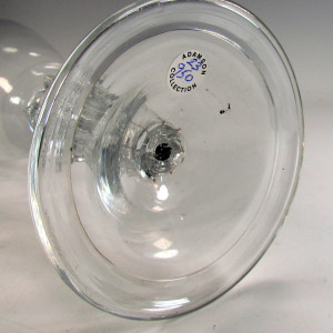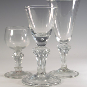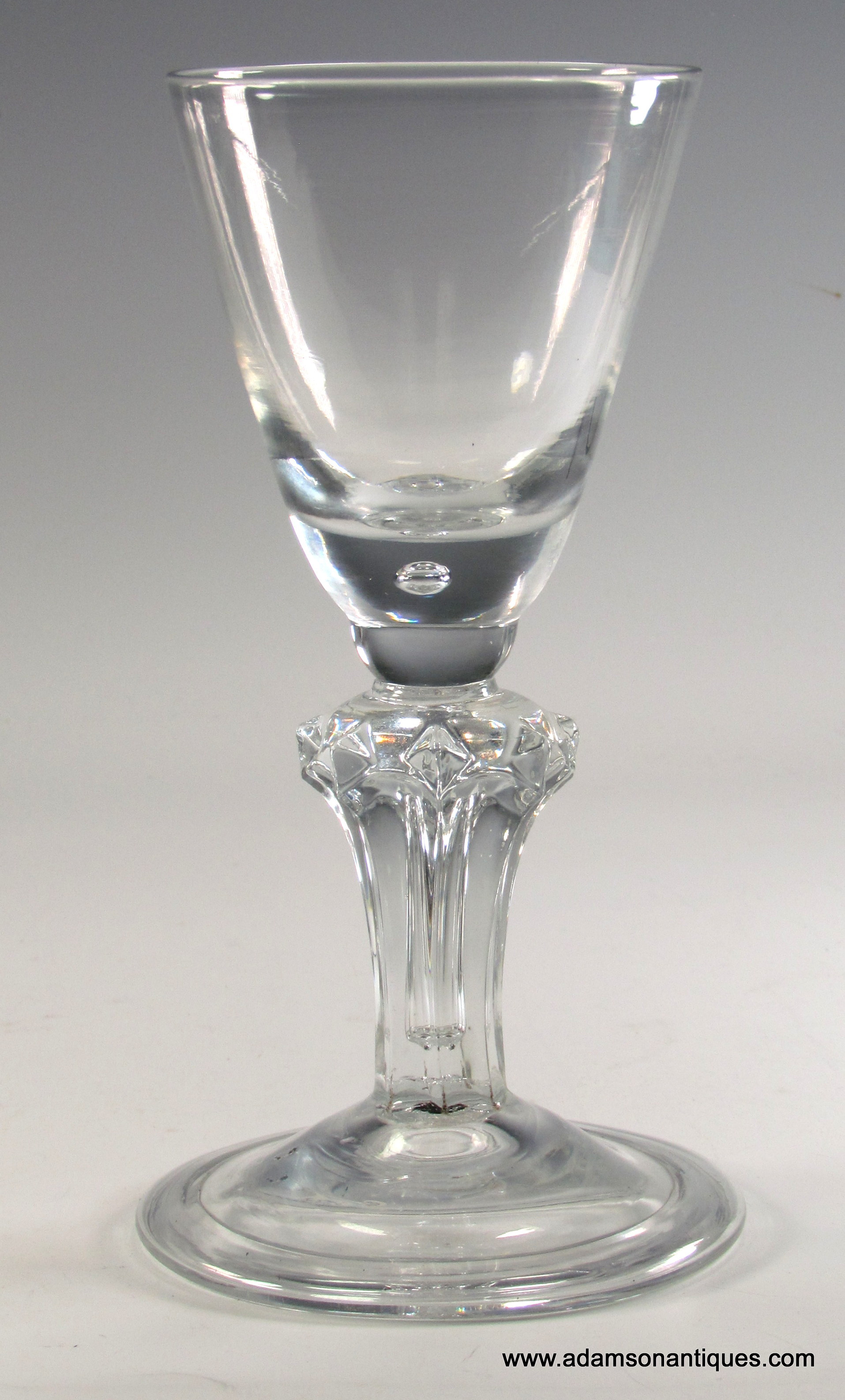 A very fine and substantial pedestal stem goblet , having round funnel bowl with teared solid base and half knop below , a feature said to have been reserved for the finest examples , the stem is a teared and eight sided with superbly crisp arched panels with large prominent diamonds to the shoulders.all on a large folded conical foot.